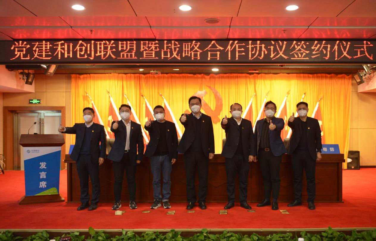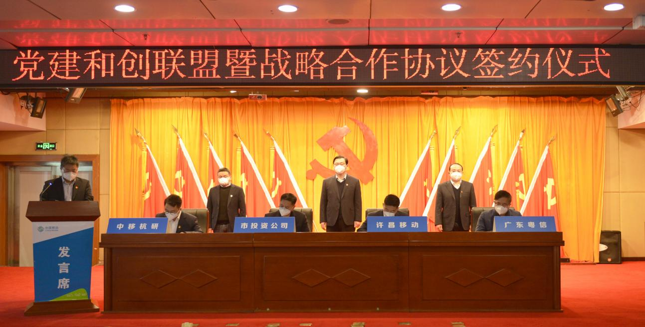 儀式現(xiàn)場,集團(tuán)公司與許昌移動、中移杭研共同簽訂“紅色引航 同心強(qiáng)基”黨建和創(chuàng)聯(lián)盟協(xié)議,與許昌移動、中移杭研、廣東粵信共同簽署戰(zhàn)略合作協(xié)議。