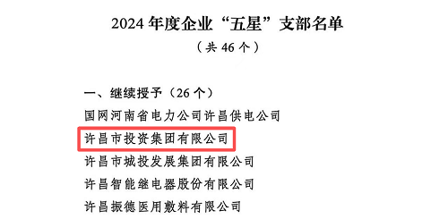 近日,中共許昌市委組織部印發(fā)了《關(guān)于對2024年度村(社區(qū))及機(jī)關(guān)、企業(yè)“五星”支部給予表揚(yáng)的通報(bào)》,許昌市投資集團(tuán)黨委被繼續(xù)授予“五星”支部榮譽(yù)稱號,這是集團(tuán)黨委自2022年以來連續(xù)三年獲此殊榮。